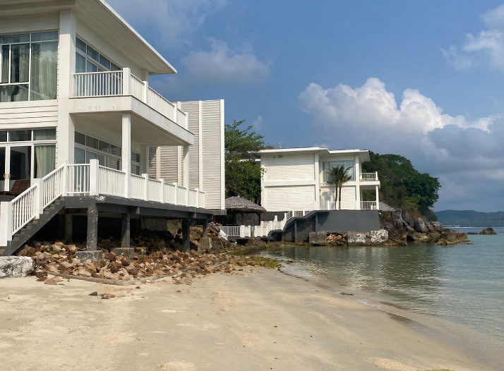 Không có bê tông nào đủ kín để ngăn nước biển vĩnh viễn , theo kinh nghiệm của chúng tôi với bê tông thường sát bờ biển thì tuổi thọ chỉ từ 5-15 năm . khu vực sóng đánh bị hư hỏng thì toàn bộ tòa nhà phía trên phải bỏ theo